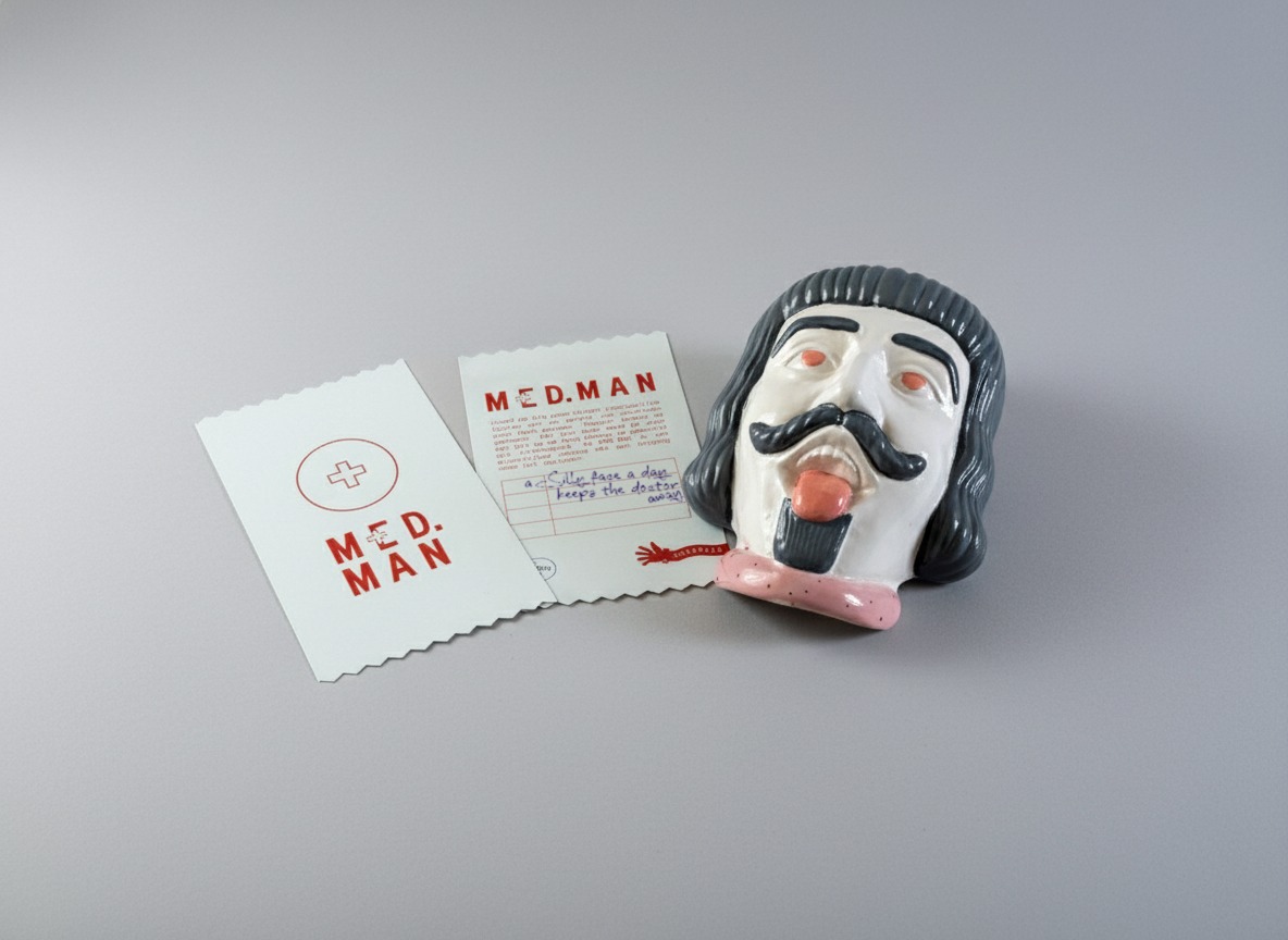 Vanaf de 17e eeuw hingen soortgelijke figuren aan de gevels van apotheken door heel europa. 'Gapers' werden ze genoemd. Met hun open mond en soms een pil op de tong werden ze gebruikt als uithangbord. De MED.MAN is een eigentijdse remake met een knipoog naar het verleden.