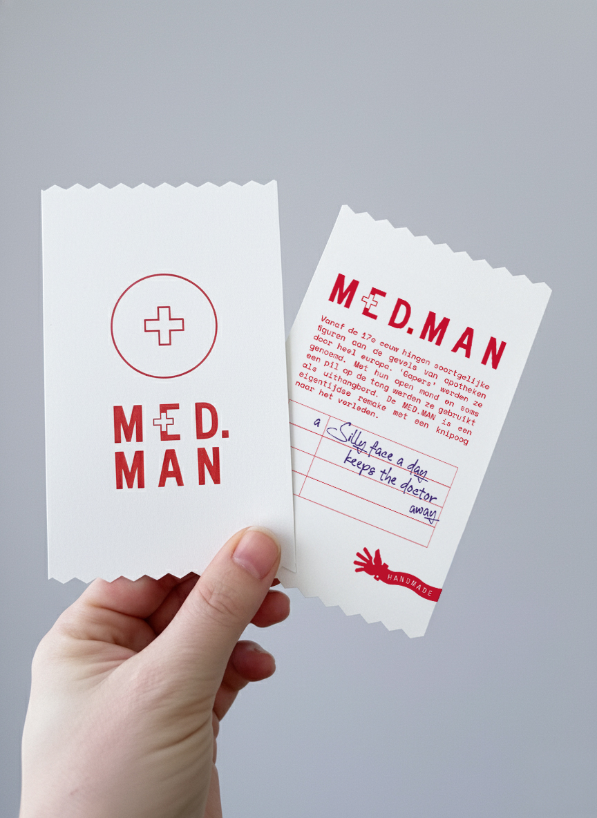 Vanaf de 17e eeuw hingen soortgelijke figuren aan de gevels van apotheken door heel europa. 'Gapers' werden ze genoemd. Met hun open mond en soms een pil op de tong werden ze gebruikt als uithangbord. De MED.MAN is een eigentijdse remake met een knipoog naar het verleden.